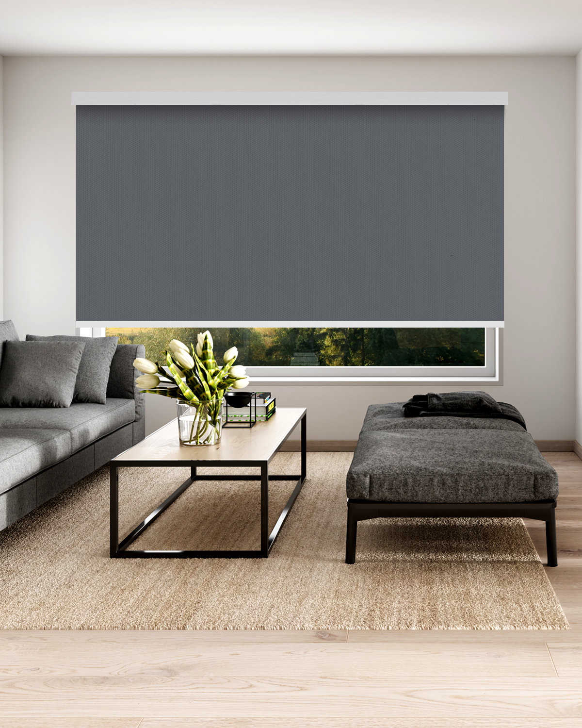 Dian Charcoal Blackout can create a calm oasis bathed in beautifully controlled light. Our Blackout Roller Shades knock out glare, dial up the privacy, and make any room feel effortlessly refined—because comfort should always look this good.